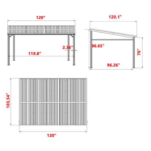 VEIKOUS 8'x10' Metal Leaning Gazebo with Galvanized Steel Roof, Outdoor Lean-to Pergola, Patio Cover, Black