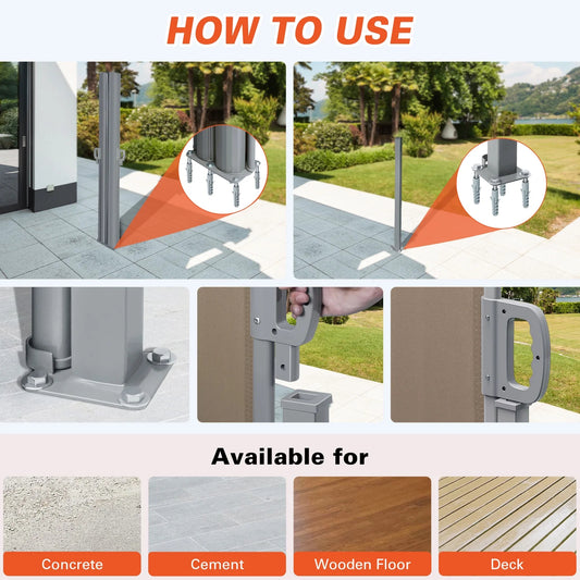 NAWAY 71'' x 236'' Retractable Side Awning, 280 GSM Retractable Folding Privacy Screen Waterproof & UV-Resistant Privacy Awning for Outdoor-Light Brown