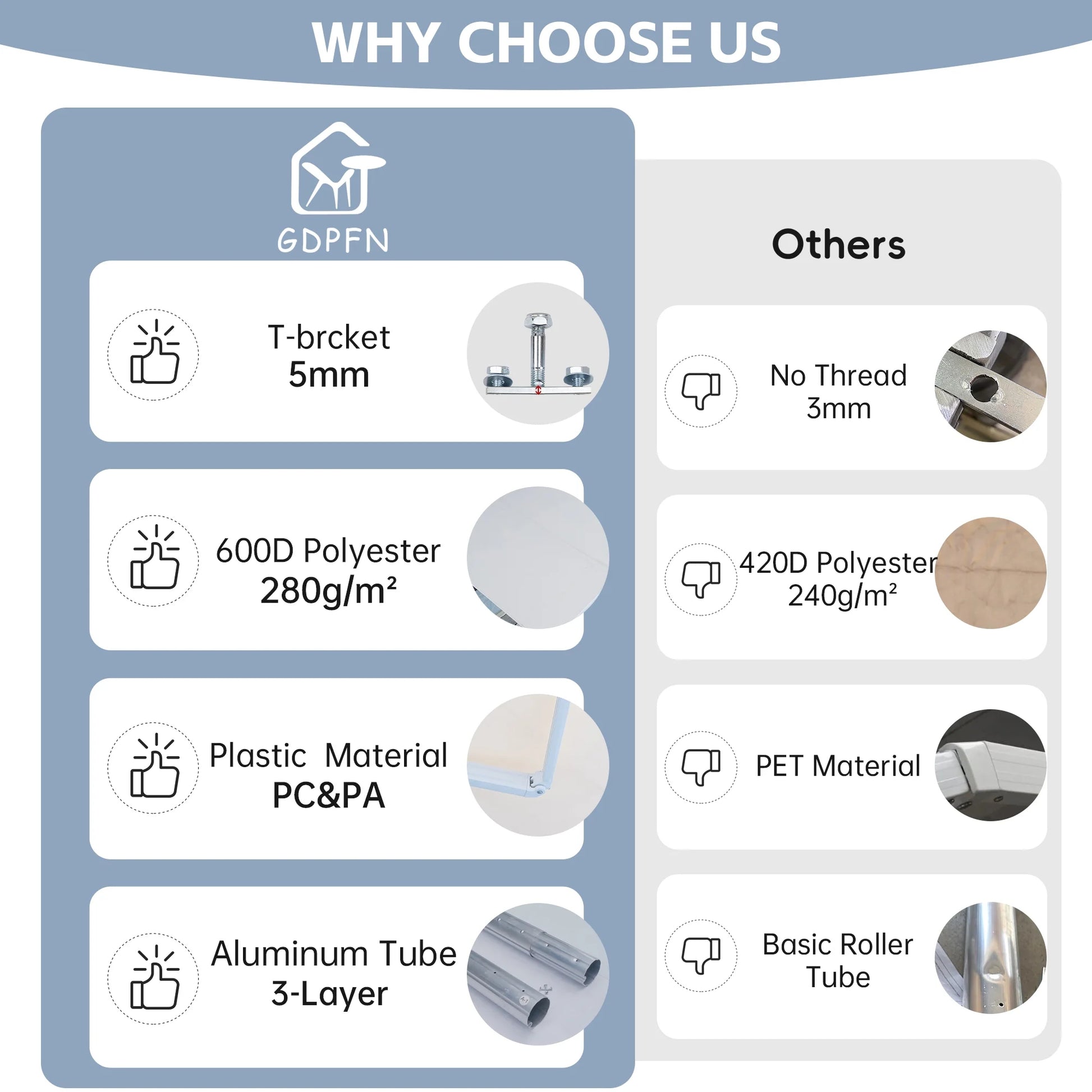 HIGH QUALITY The patio awning frame adopts powder-coated aluminum alloy and rust-resistant steel supporting tubes, which makes it can obtain the wind resistance up to 28MPH. 280g/m² Polyester with PU coating fabric is water resistant, anti ultraviolet, resistant to sun fading, has 50UV+ solar protection and also tested for a wind resistance Beauport scale 4