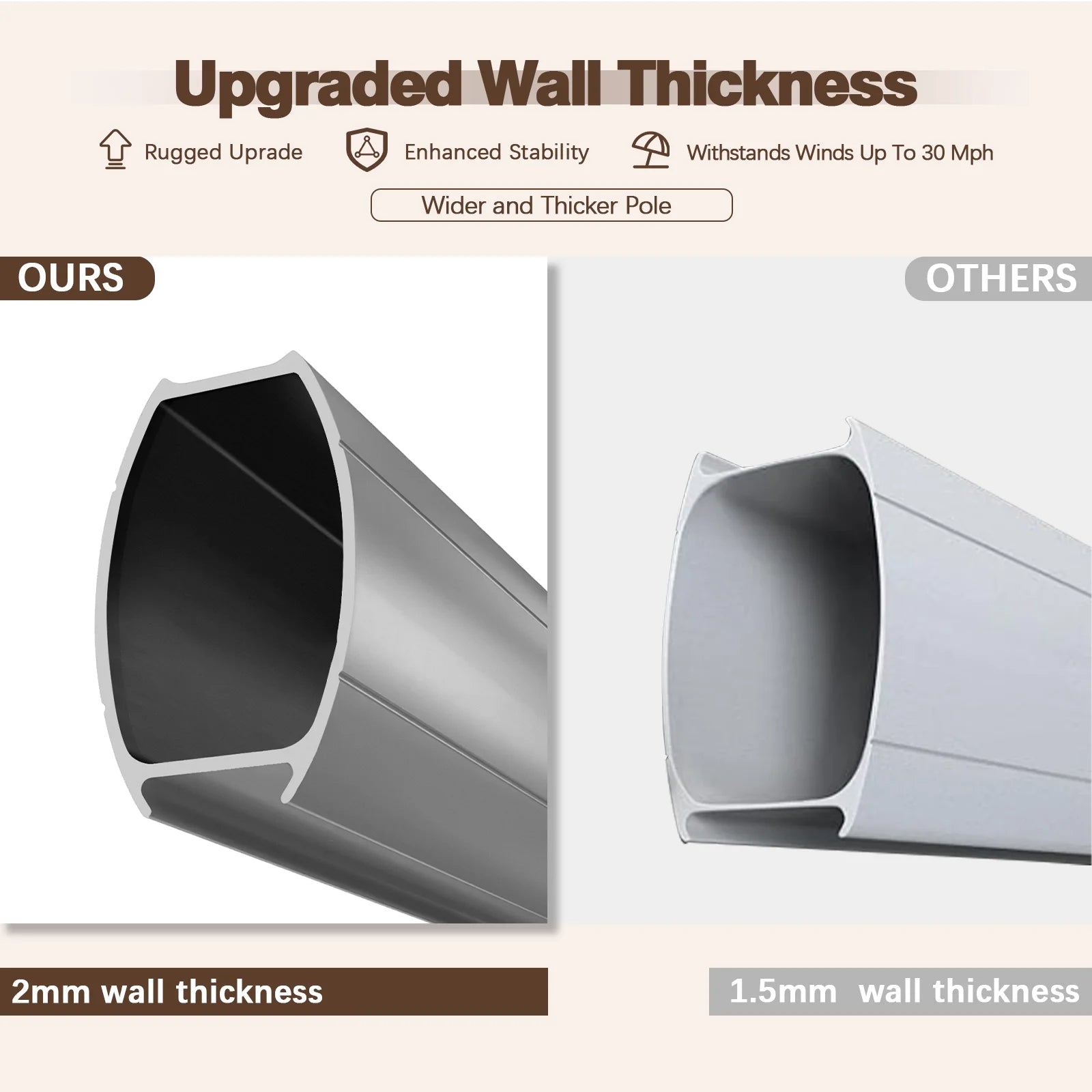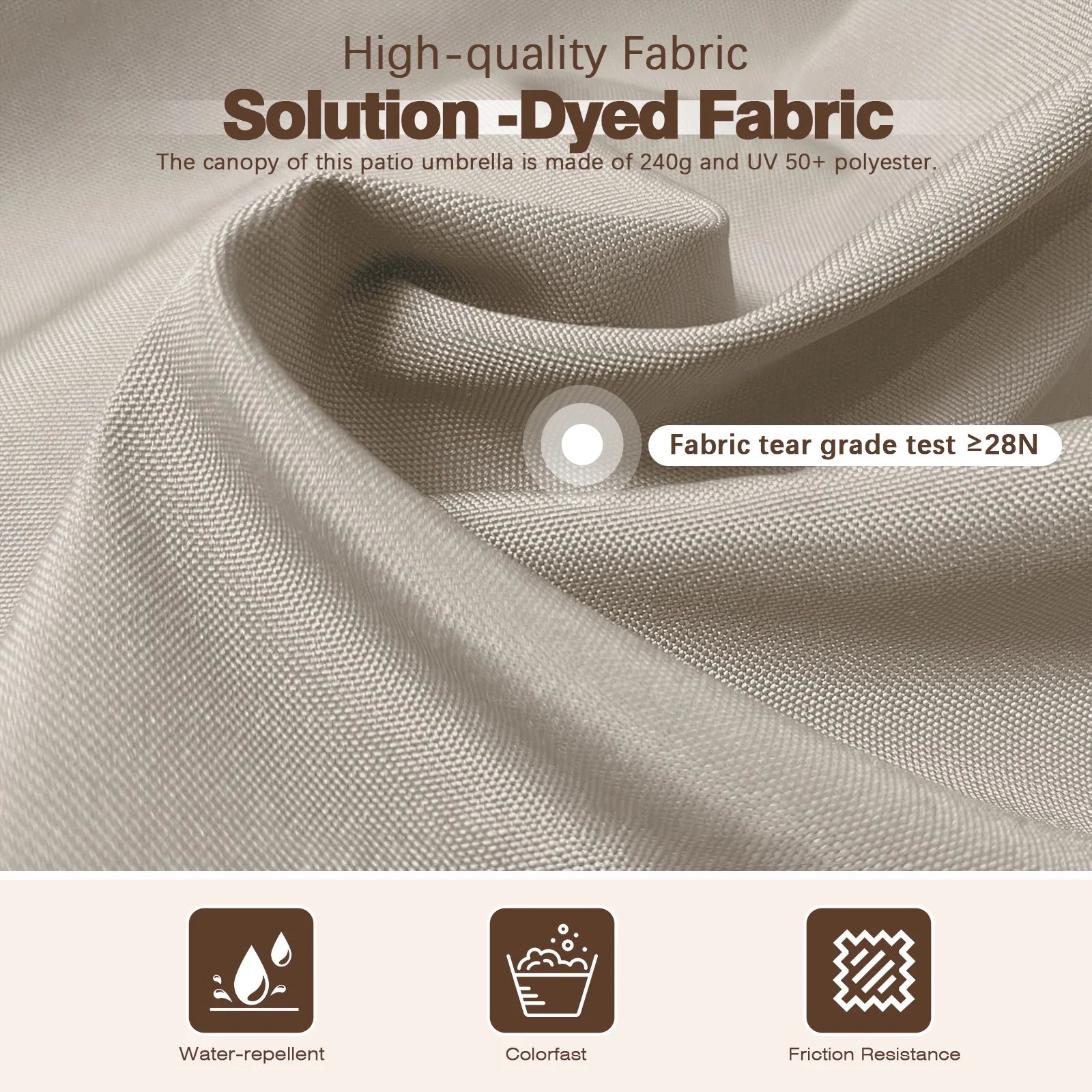 Durable Aluminum Frame-All-aluminum umbrella bones and 8 heavy-duty ribs that makes the umbrella easy to move and transport.It is also strong and resistant to rust, ensuring the umbrella's longevity and durability even in outdoor environments.