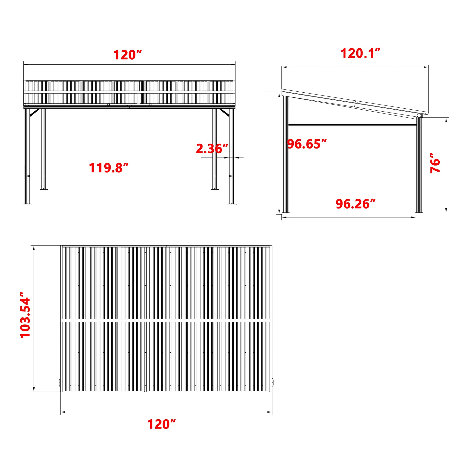 • All-Weather Metal Hardtop Protection: Galvanized steel roof with slope design efficiently sheds rain and snow, providing year-round dry shade coverage.